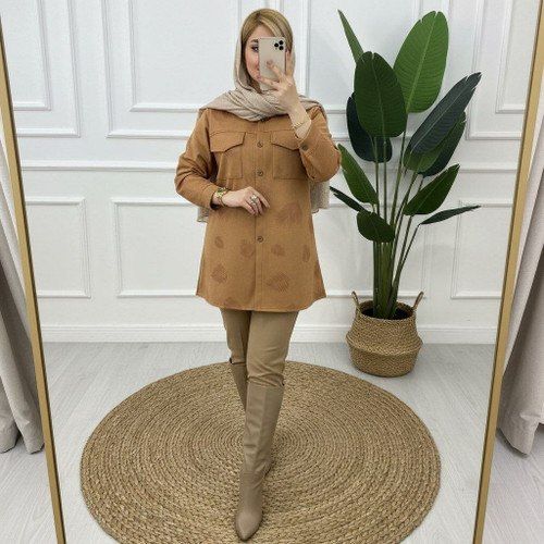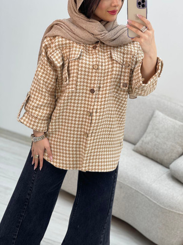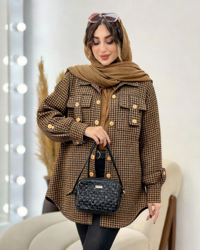 مانتو پشمی پیرودبل پاییزی گندم