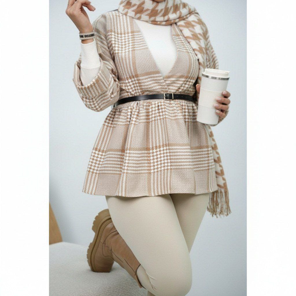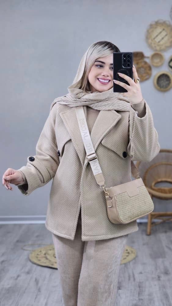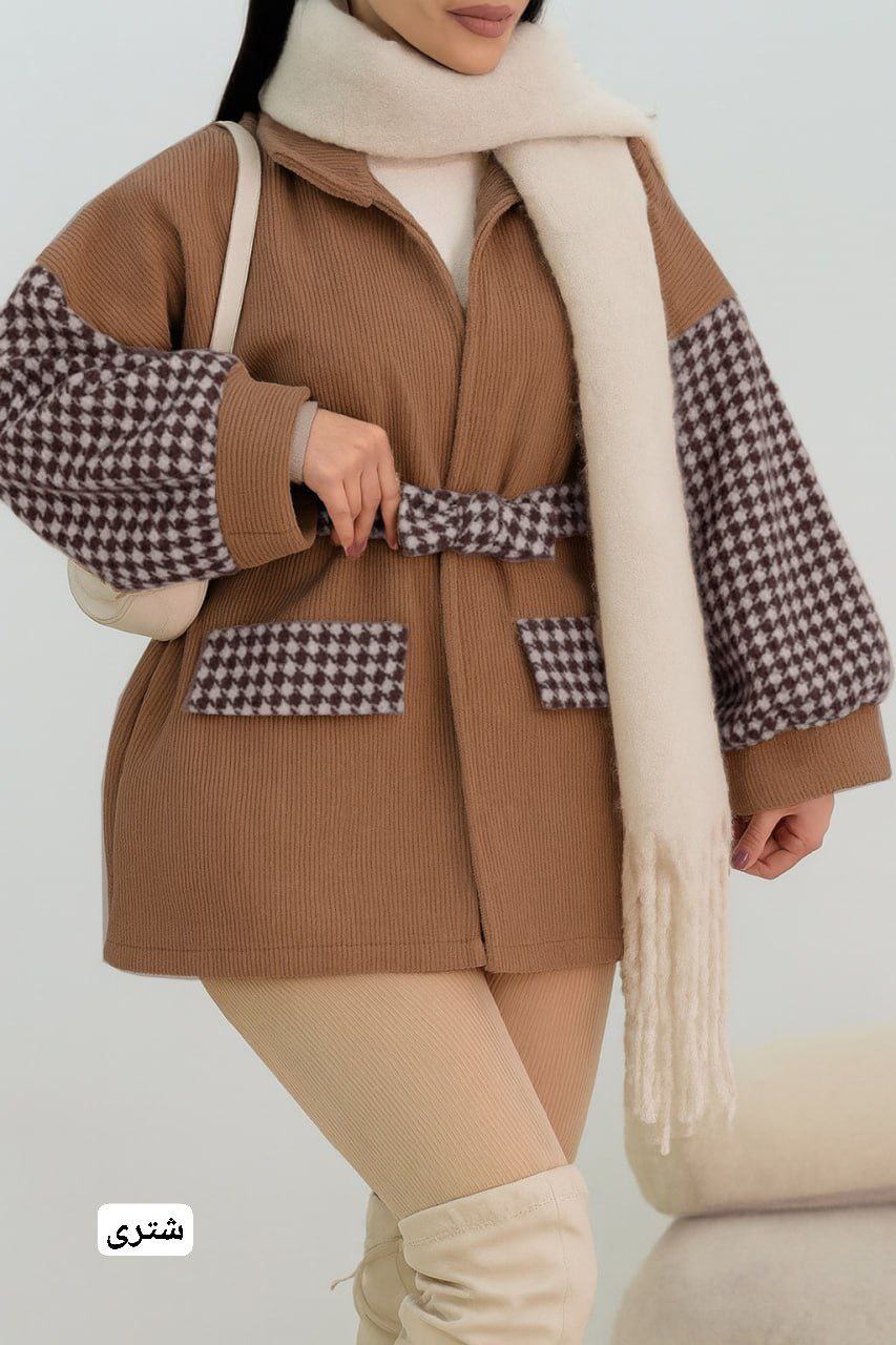 مانتو پشمی پیرودبل پاییزی گندم