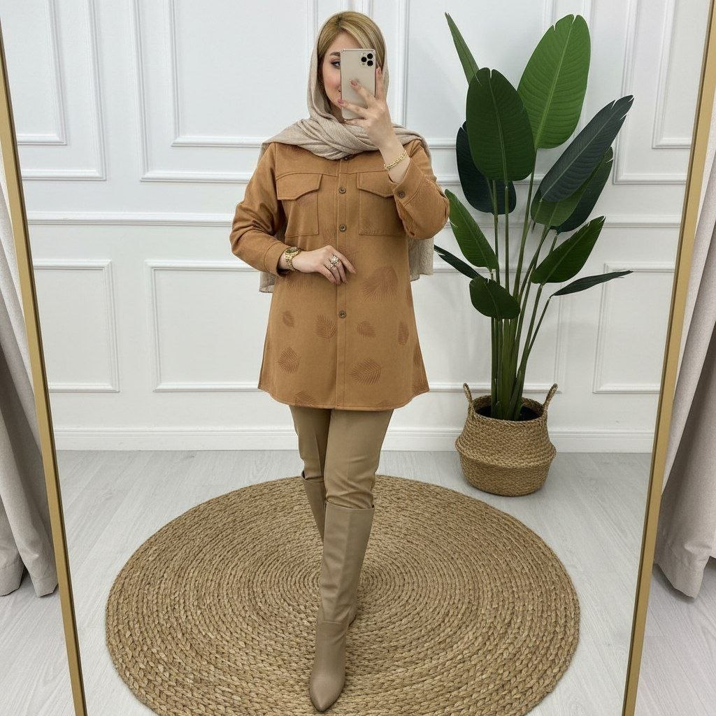 ناموجودمانتو پاییزه مخمل کبریتی ریز السا
