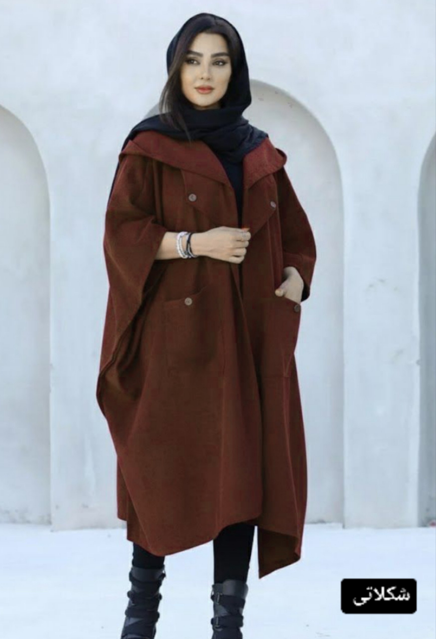 مانتو پانچ کلاهدار کبریتی