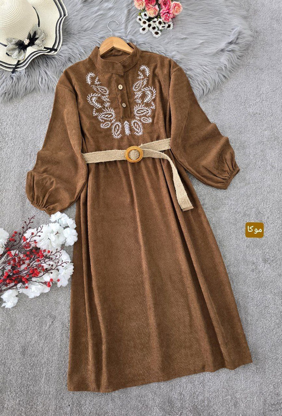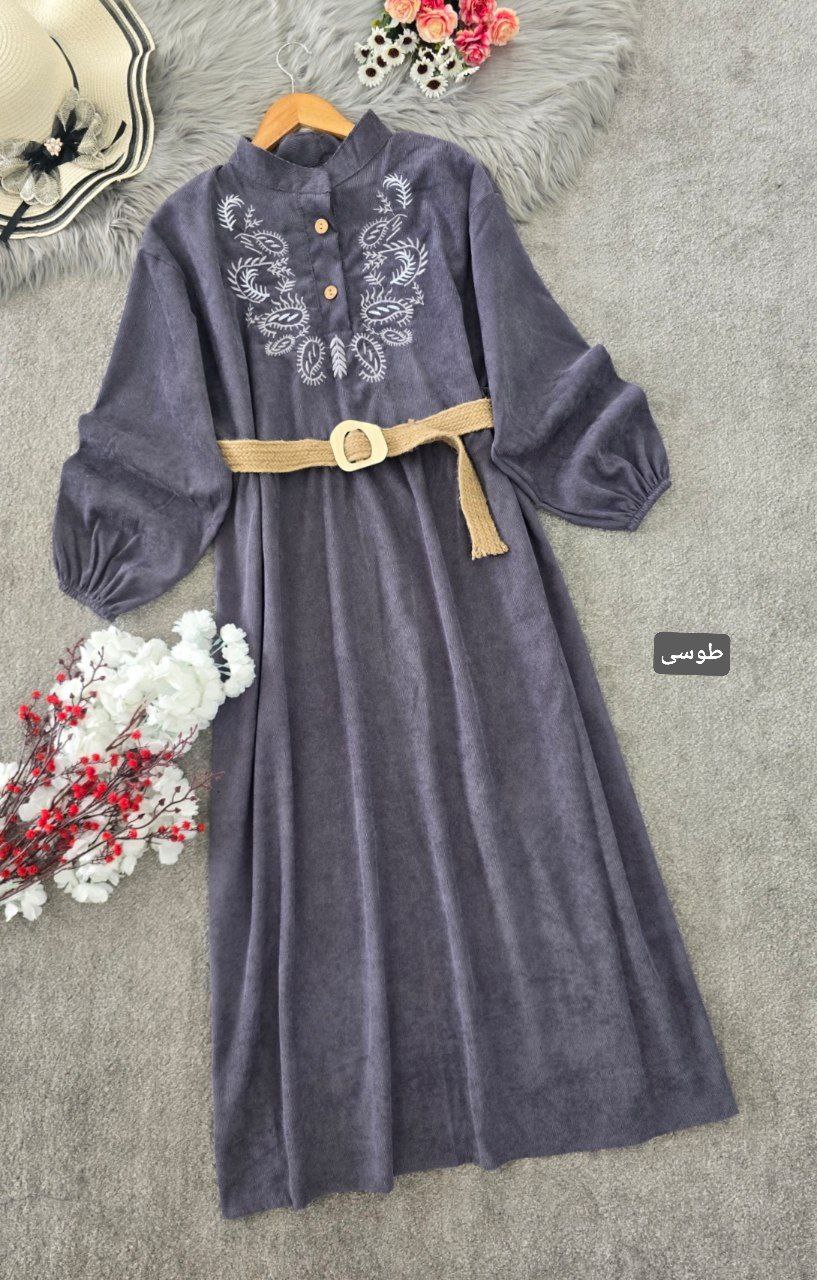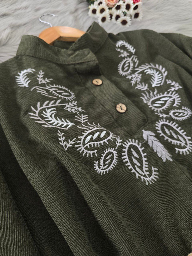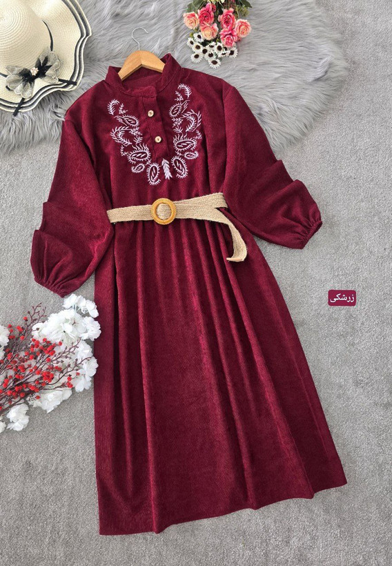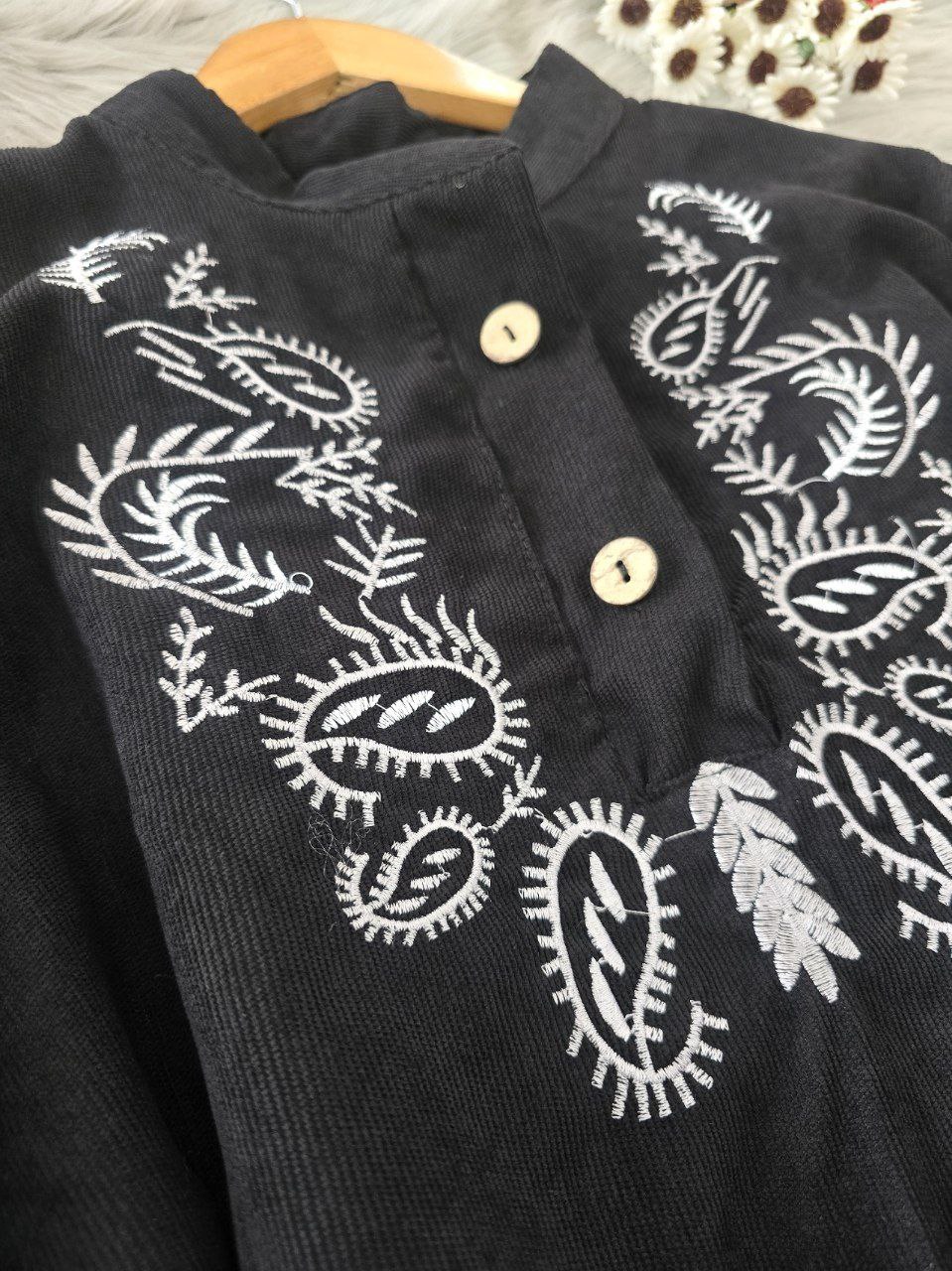 ساخته شده از مخمل کبریتی با گلدوزیهای ظریف و دکمههای یقه کاربردی، این کفتان جلوهای لوکس و شیک به استایل شما میبخشد.