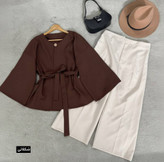 رنگ شکلاتی این پارت رنگ شلوارش استخونی تیره هست