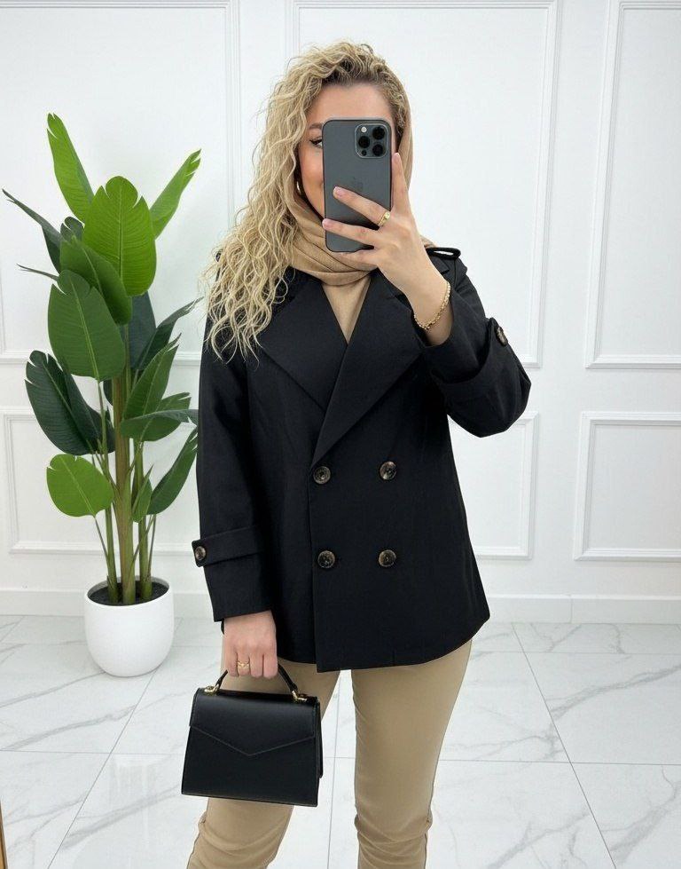 یه ترنچ کت کوتاه پاییزی واسه روزای رنگی پاییز ،با شلوار جین وپارچه ای یا چرم ،با شلوار واید یا جذب،همه جوره قشنگه ،جنسش سانتانا بارونی ضد آبه ،داخل کار استر دوزی شده و کاملا گرمه✅👌😎