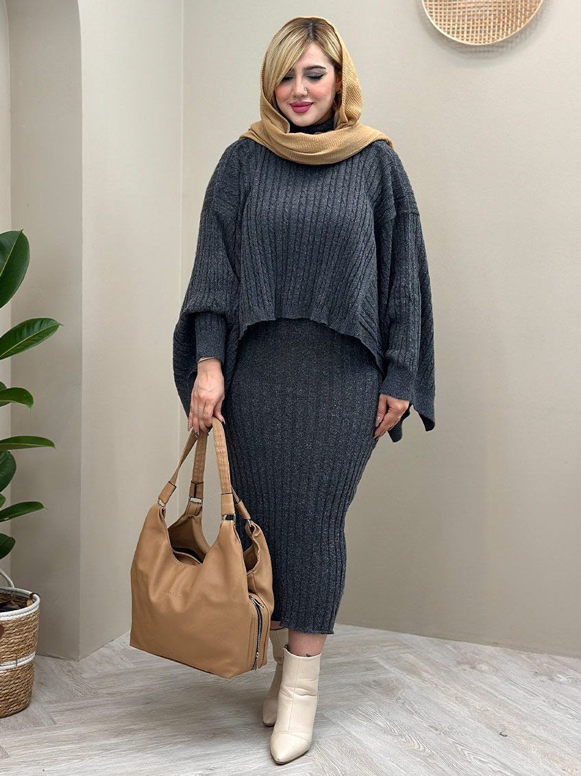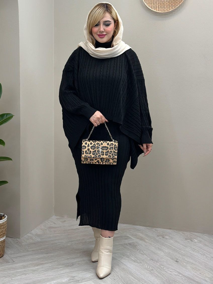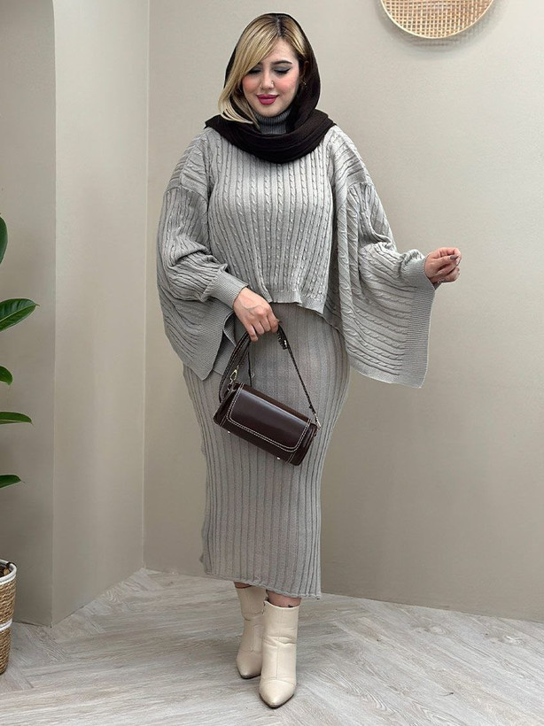 این ست دارای دو تیکه سارافون و رویه (شنل) با جنس بافت با کیفیت می باشد که برای روز های پاییزی مناسب هست. و یک استایل شیک و زیبا خانومانه دارد.