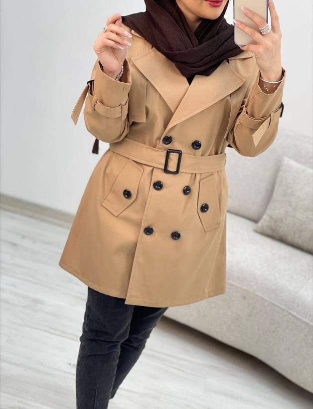 🛍 توضیحات: کت دارای سه دکمه ی کاربردی میباشد دوجیب کاربردی و کمربند جهت تنظیم سایز مچ استین ها دارای بند کاربردی میباشد جهت تنظیم اندازه مچ و ایست و تنخور بهتر
