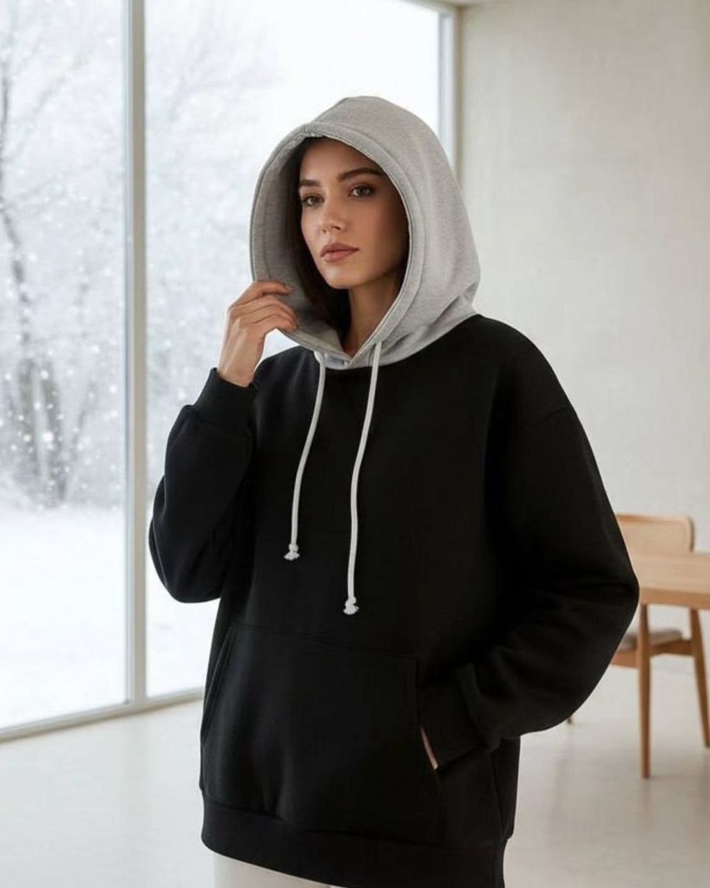 هودی دورس تو کرکی مناسب فصل با رنگ دوست داشتی مشکی و کلاه طوسی😎👌🍂
