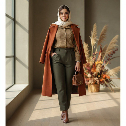 مانتو پاییزی پیردوپل ضخیم مدل آیلین