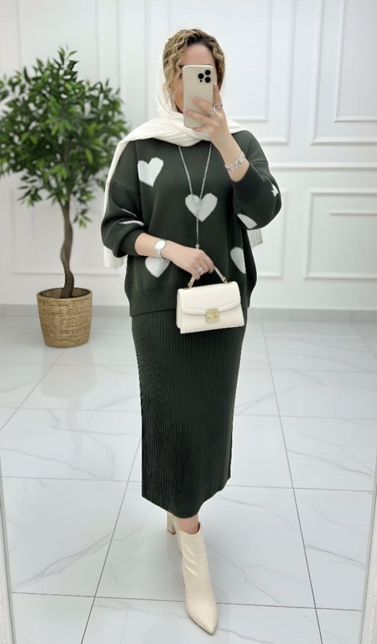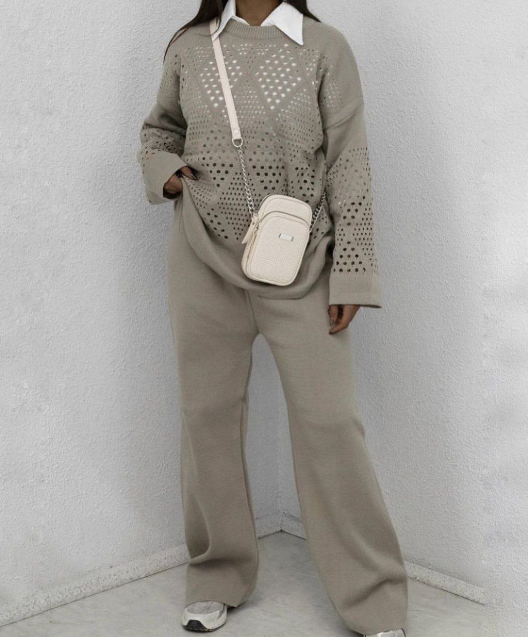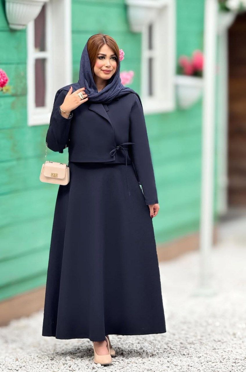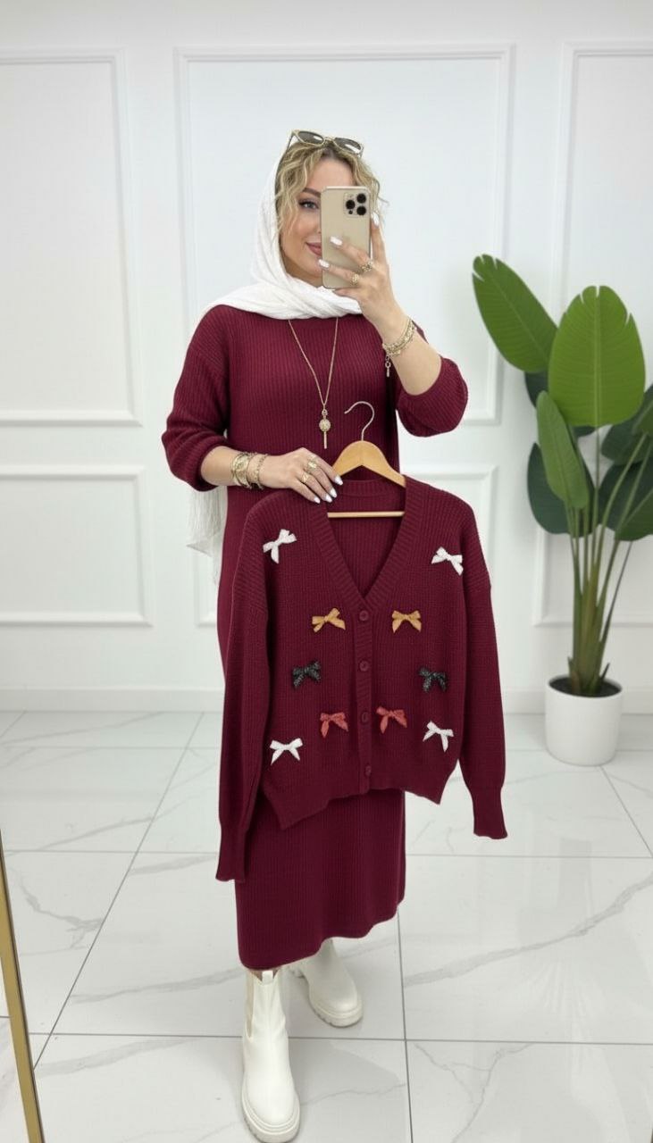 ست دو تیکه کت و سارافون بافت پاپیونی