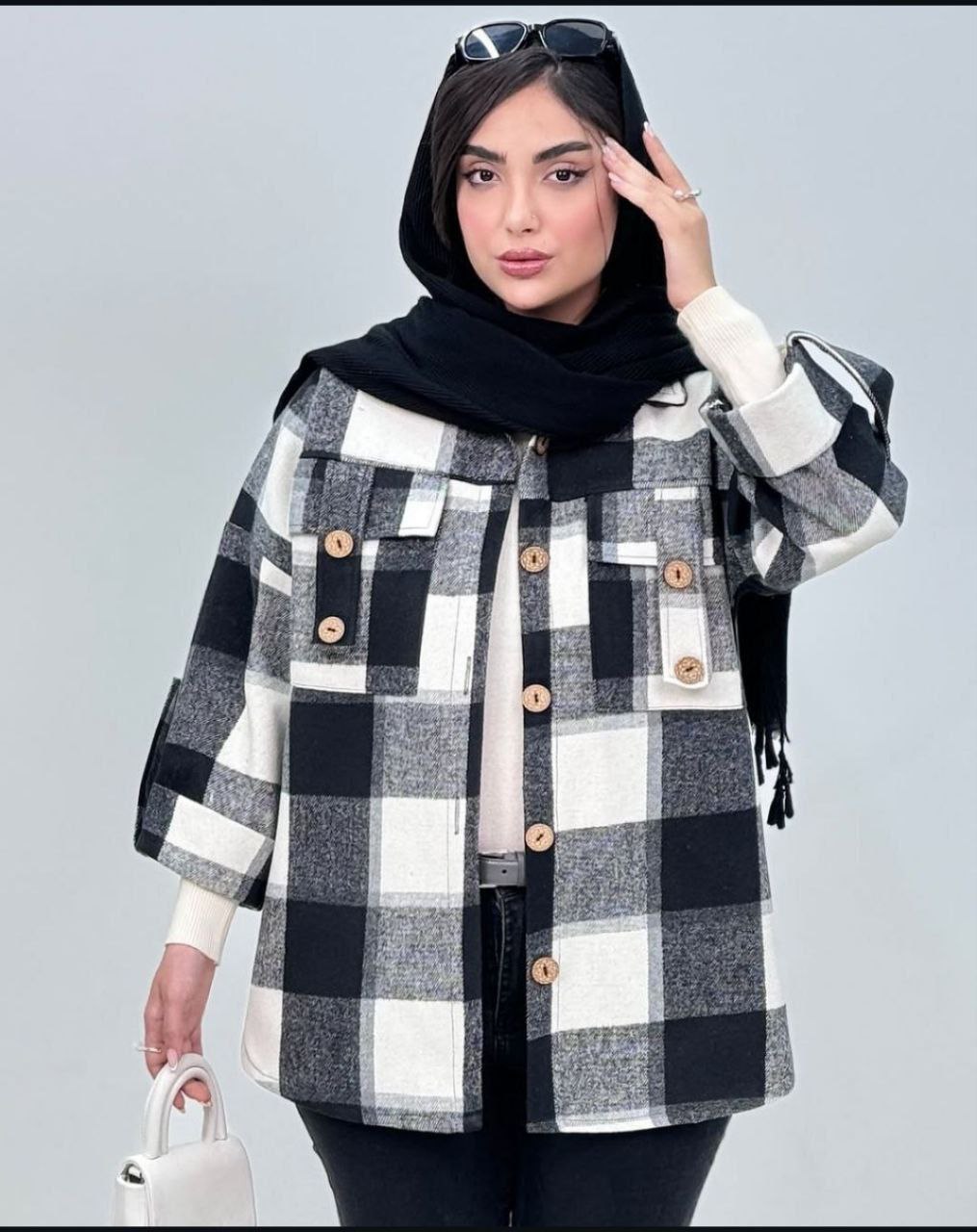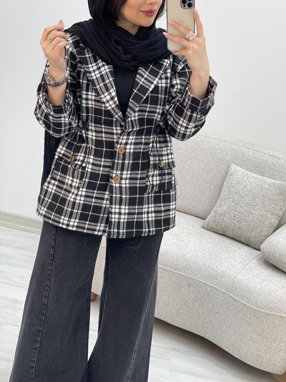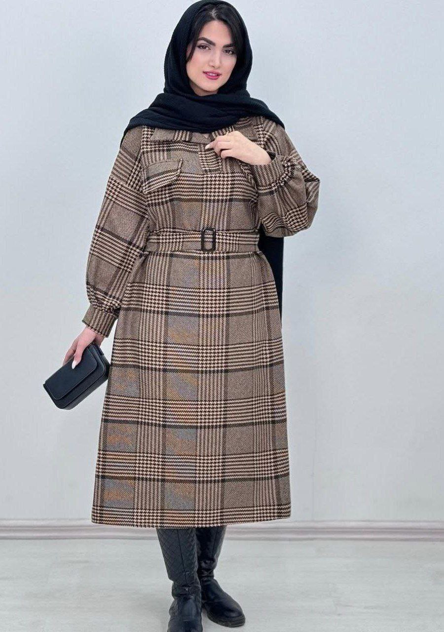 پالتو چهارخونه فوتر پشمی یقه انگلیسی