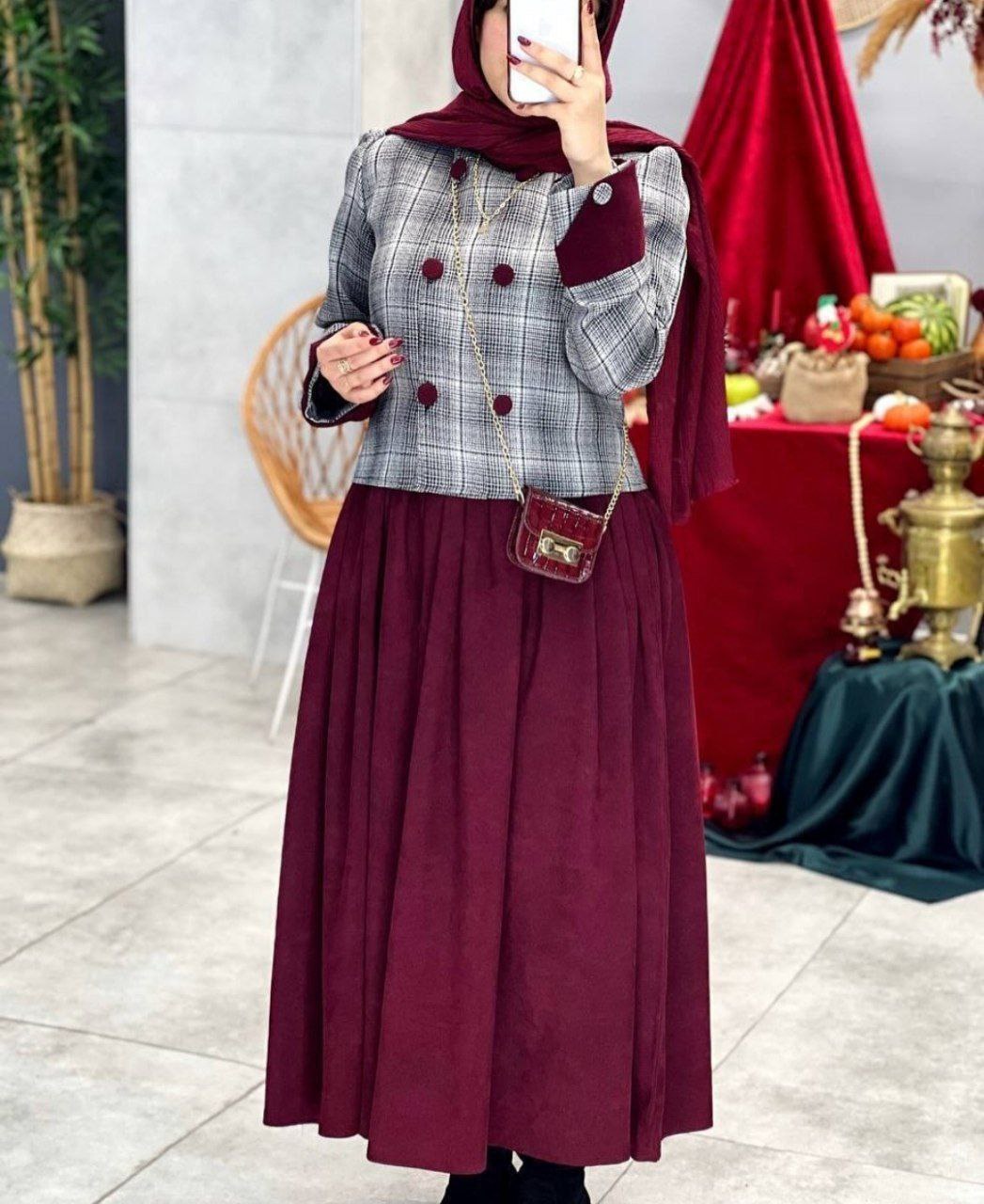 ست کت و دامن پاییزی مخمل موهر شیدا